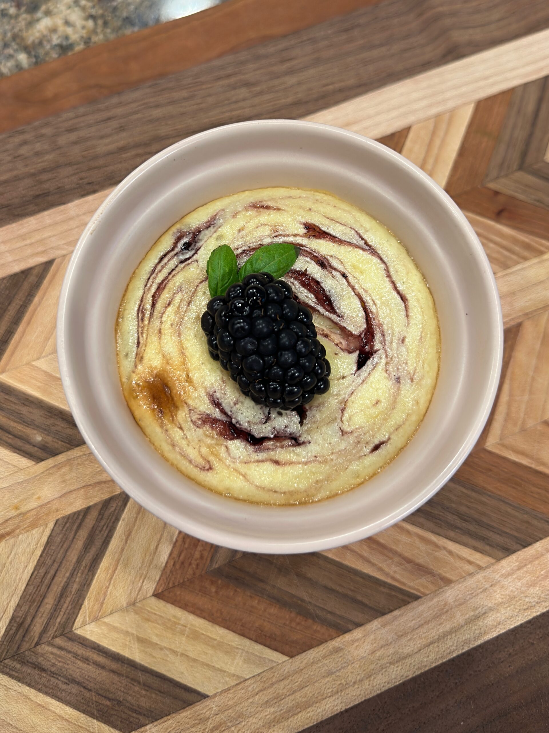 Cheesecake was the first dessert that I was ever truly intimidated by- the cracking, trying to keep the crust together. It was too much, so instead I began by making much easier mini cheesecakes which eventually turned into treats with inclusions like these mini blackberry cheesecakes. These are done in around an hour and bake in their serving dish for less cleanup.