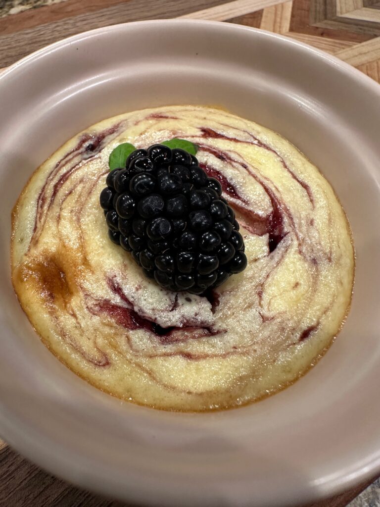 Cheesecake was the first dessert that I was ever truly intimidated by- the cracking, trying to keep the crust together. It was too much, so instead I began by making much easier mini cheesecakes which eventually turned into treats with inclusions like these mini blackberry cheesecakes. These are done in around an hour and bake in their serving dish for less cleanup.